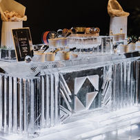 Nous œuvrons également avec une gamme de matériaux froids, incluant la glace et la neige. Nous nous spécialisons dans la réalisation de sculptures et de décors.